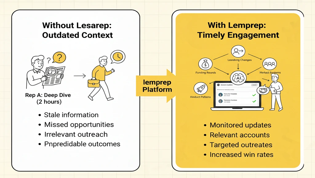 Lemprep keeps accounts current with monitored updates so teams approach prospects when relevance is highest.